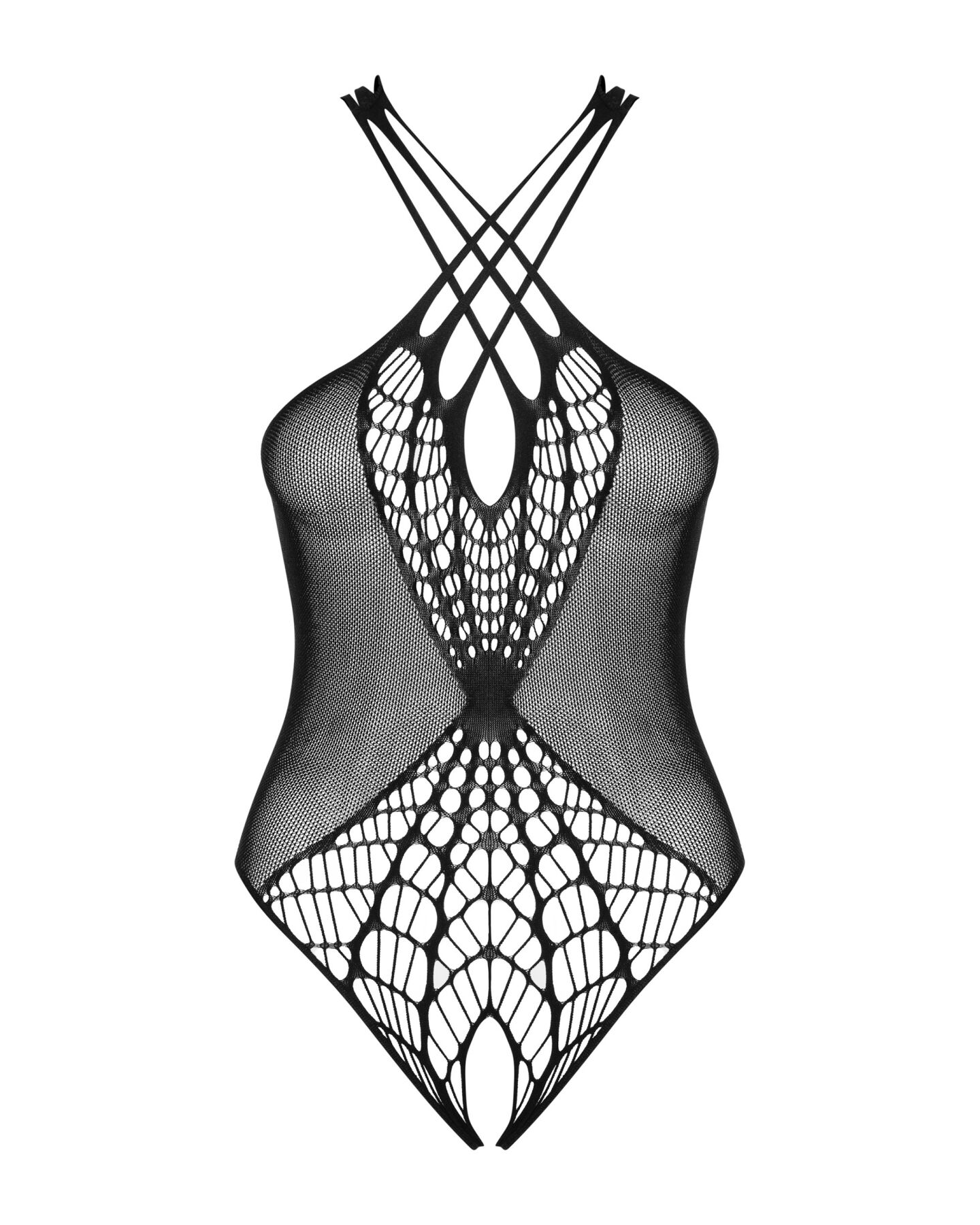 Геніальний дизайнерський задум у комбінуванні елементів з дрібної та великої сітки зробили цей бодістокінг унікальним та неповторним. Жоден сантиметр тіла цей шикарний аксесуар не залишив поза увагою: дрібна сіточка красиво обтягує груди, не прикриваючи її, а відтіняючи і додаючи еротизму. Малюнок з великої сітки, здавалося б виконаний грубо, насправді продуманий до найдрібніших деталей, візуально «розтягуючись» у напрямі відкритої промежини. На грудях велика сітка переходить у шість лямок — по три з кожного боку — схрещуються попереду і на спинці. Позаду бодістокінг з великою та дрібною сіткою Obsessive B118 teddy також виконаний із сітки з осередками різної величини. Але найбільшим осередком, без сумнівів, залишається та, в якій видно спокусливу попку.
