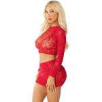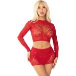 Комплект Leg Avenue Rhinestone Crop Top and Mini Skirt One Size, Red