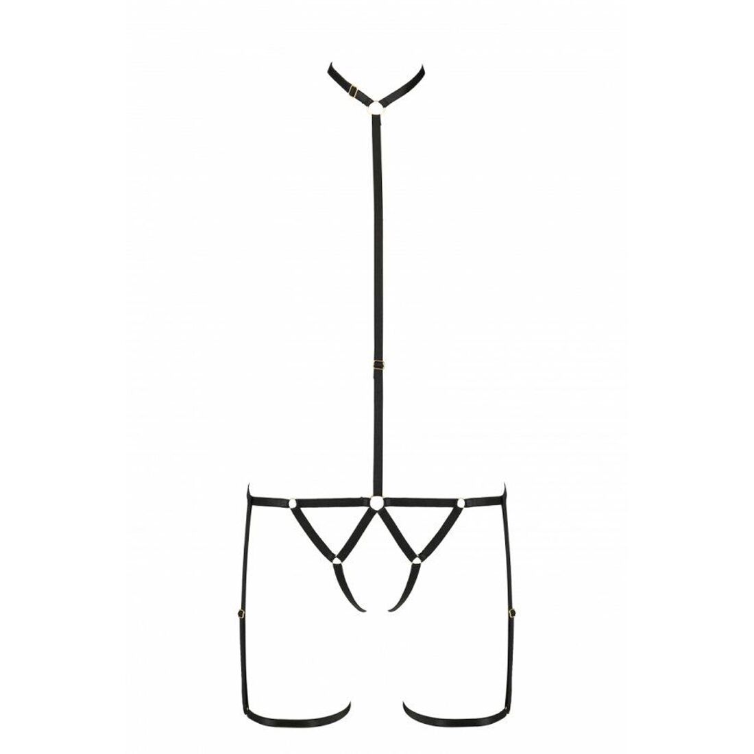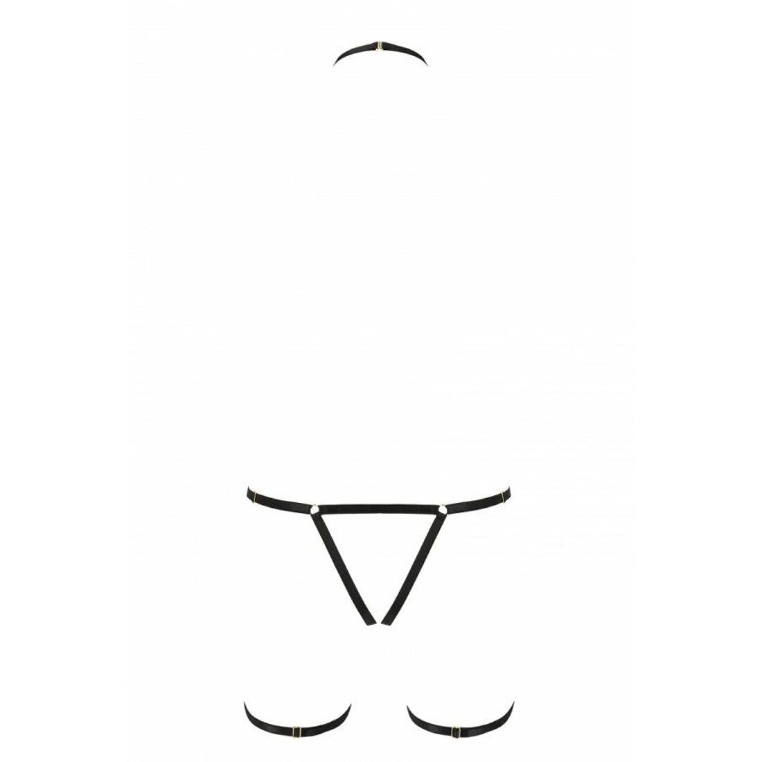 У цій моделі чуттєво поєднуються три різних елемента: чокер, ремінь і підв'язки. Відразу три прикраси в одній! І кожну ви зможете відрегулювати по власній фігурі. Спокусливий дизайн акцентує увагу на нижній частині тіла, при цьому абсолютно не заважає навіть найспекотнішим пестощам. Не знімайте цю красу навіть під час гарячої близькості!