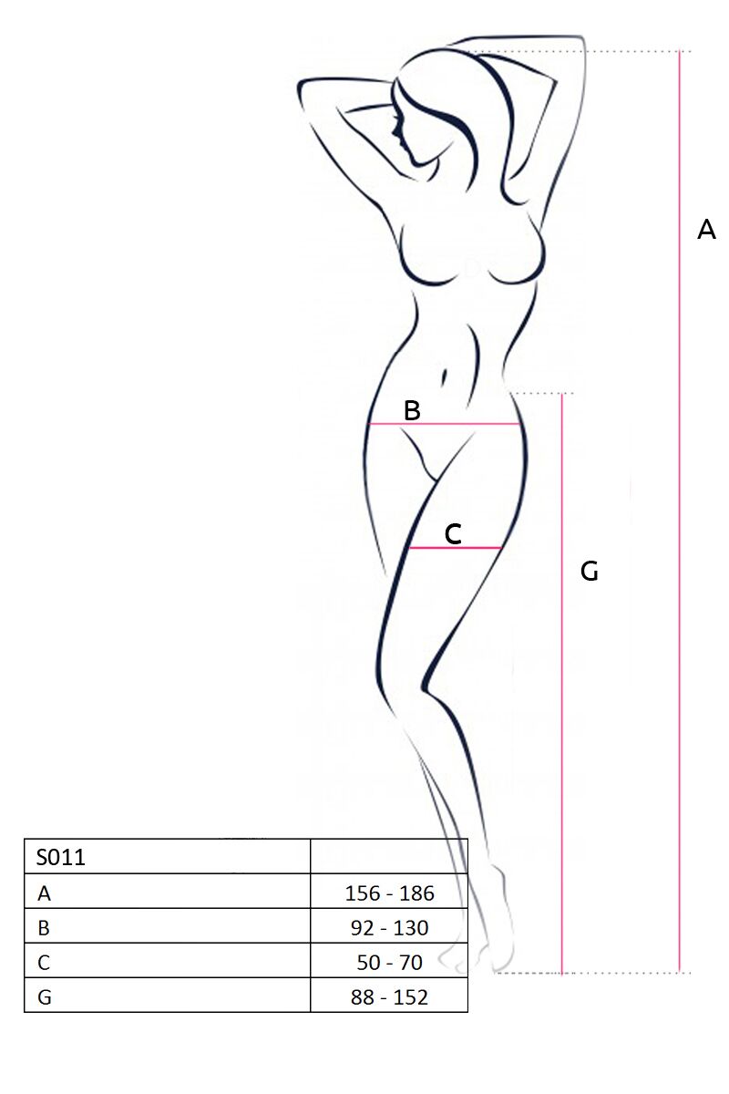 Панчохи-стокінги Passion S011 характеризуються високою посадкою, яка підкреслює талію, від пояса дизайн імітує гартери для панчіх. Велика сітка ніжно обволікає ніжки, створюючи відчуття, немов це друга шкіра. Такий аксесуар, як панчохи-стокінги, можна носити й у повсякденному житті, і для романтичних побачень із продовженням. Головною перевагою є те, що їх абсолютно не потрібно знімати для любовних ігор, завдяки відкритому доступу в інтимних місцях.