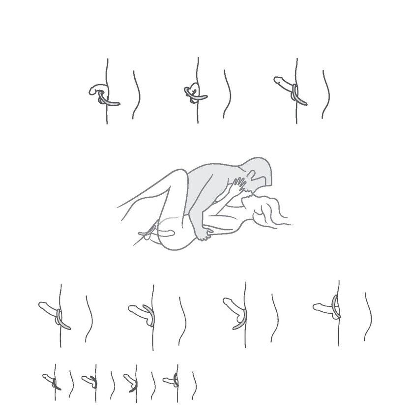 Безліч варіантів використання: змінюючи варіант розміщення кільця на члені та мошонці, можна стимулювати промежину чоловіка та клітор жінки.